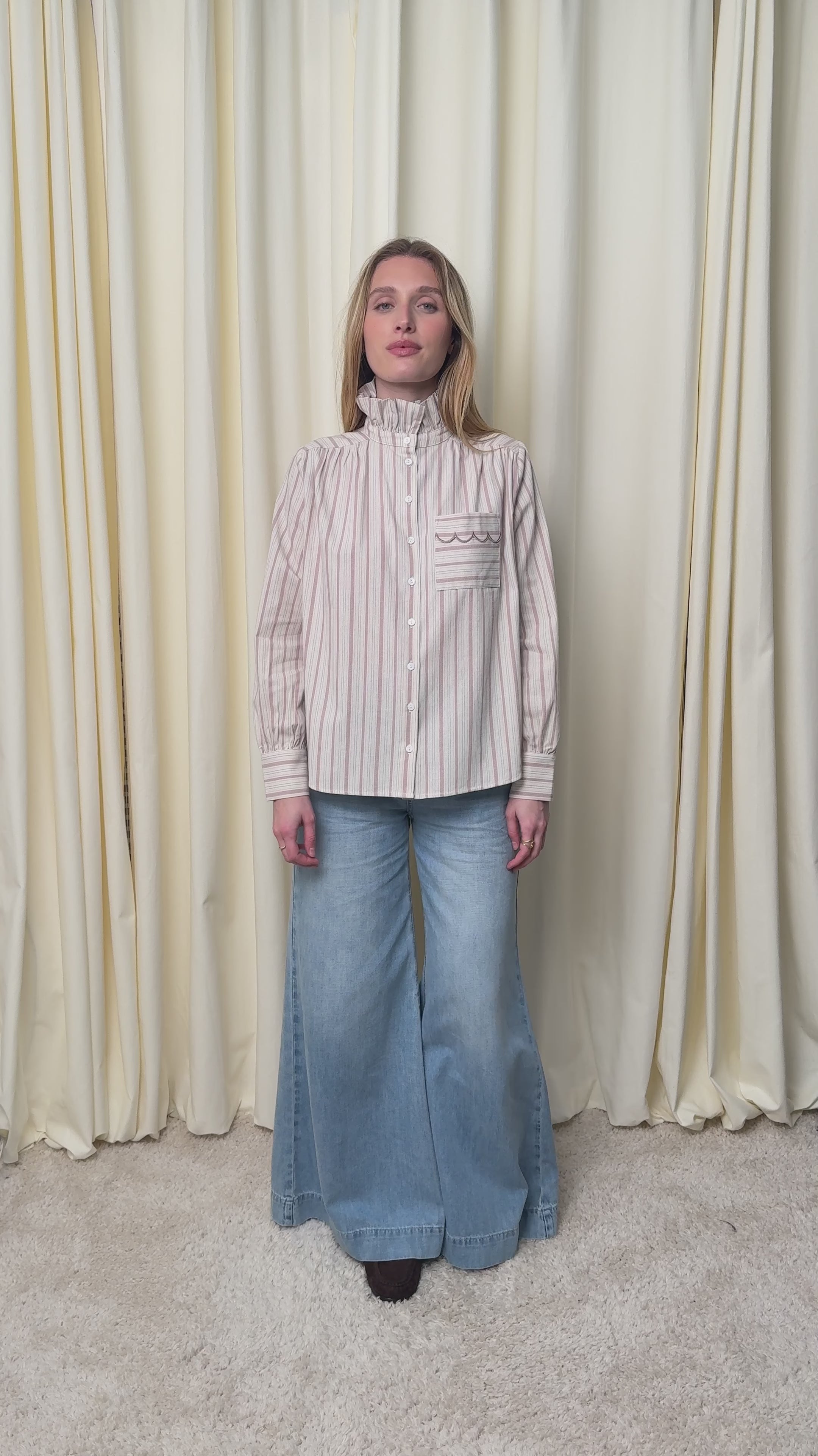 - Loose striped cotton long-sleeve shirt
