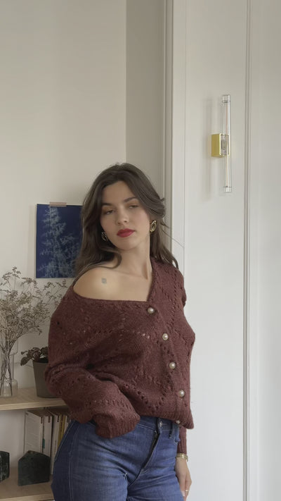 V-neckline Fancy knitting and tone-on-tone lace insertion